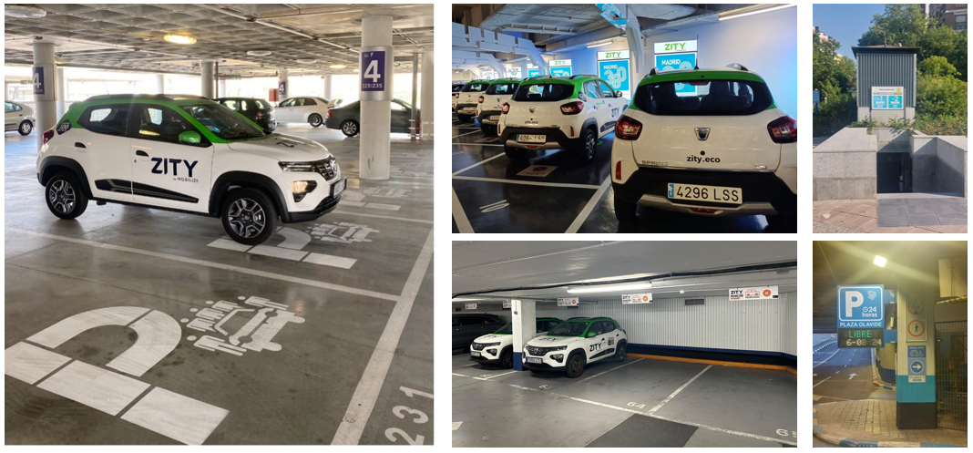 Tenemos aparcamientos reservados para Zity en muchos parking subterráneos de Madrid sin coste. En el Aeropuerto, el Parking de Canalejas, el Parking de Plaza España, el Parking de Colón, el Parking de Recoletos, el Parking de Plaza de Olavide, en el Parking Las Cortes y el Parking de Avd. de Portugal